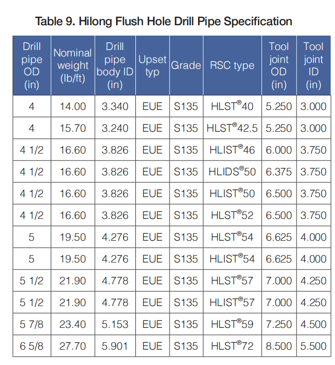 Hilong Flush Hole Drill Pipe